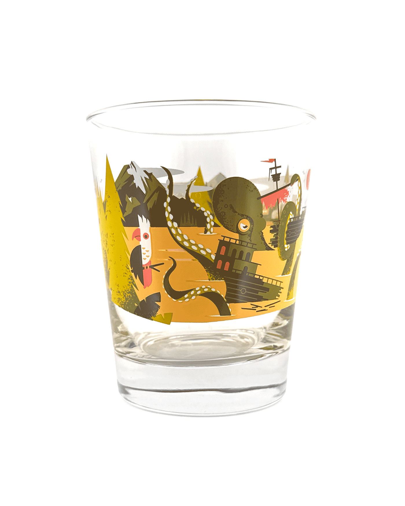 For the second year in a row, my buds at Lorelei and Hidden Harbor hired me to brand their Alpine Tiki pop-up cocktail event, featuring a curated drink menu exploring the odd affinities between Alpine and tropical flavors. In addition to the event poster and menu, I also designed a few merch items; including a pair of Mai Thai glasses and a matching t-shirt.